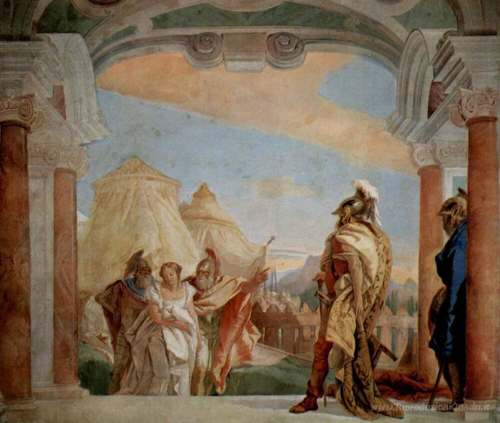 Ti offriamo una riproduzione artigianale su tela dell'opera famosa 'Euribate e Talthybios piombo Briseide a Agamemmon' di Giovanni Battista Tiepolo, dal Museo delle Riproduzioni.