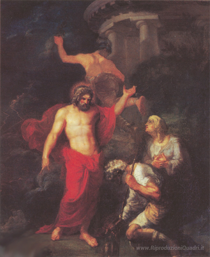 Ti offriamo una riproduzione artigianale su tela dell'opera famosa 'Giove e Mercurio, sotto forma di pellegrini in visita Filemone e' di Orest Kiprensky, dal Museo delle Riproduzioni.