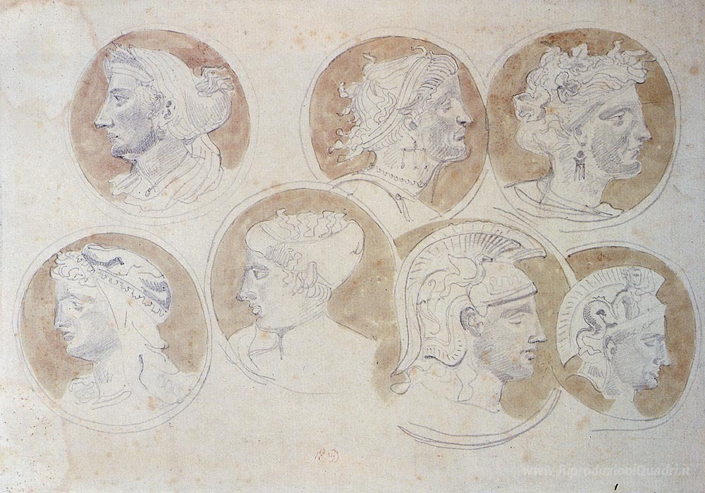 Ti offriamo una riproduzione artigianale su tela dell'opera famosa 'Gli studi di Antique Medaglioni' di Eugene Delacroix, dal Museo delle Riproduzioni.