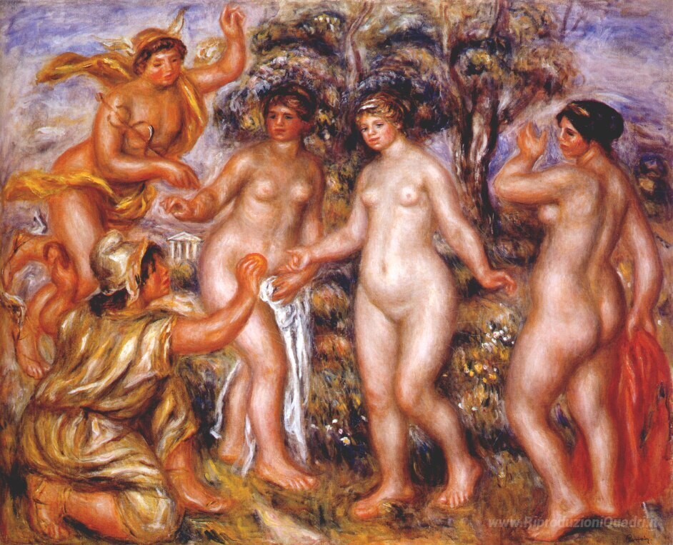 Ti offriamo una riproduzione artigianale su tela dell'opera famosa 'Il giudizio di Paride' di Pierre-Auguste Renoir, dal Museo delle Riproduzioni.