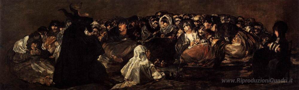 Ti offriamo una riproduzione artigianale su tela dell'opera famosa 'Il Grande Caprone o streghe Sabbath' di Francisco Goya, dal Museo delle Riproduzioni.