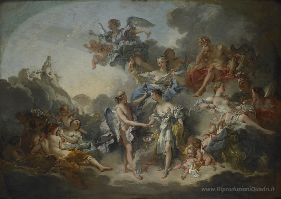 Ti offriamo una riproduzione artigianale su tela dell'opera famosa 'Il matrimonio di Psych et de L`amour' di Francois Boucher, dal Museo delle Riproduzioni.