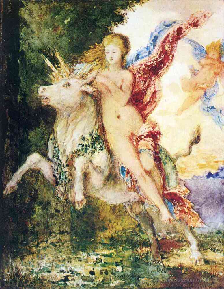 Ti offriamo una riproduzione artigianale su tela dell'opera famosa 'Il rapimento di Europa' di Gustave Moreau, dal Museo delle Riproduzioni.