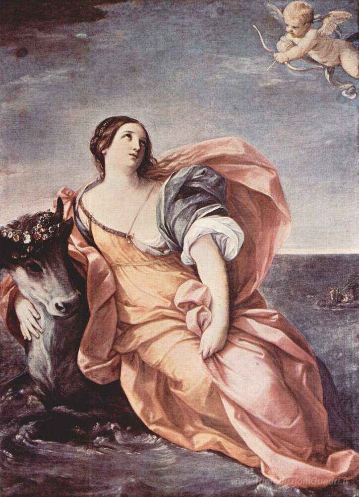 Ti offriamo una riproduzione artigianale su tela dell'opera famosa 'Il ratto di Europa' di Guido Reni, dal Museo delle Riproduzioni.