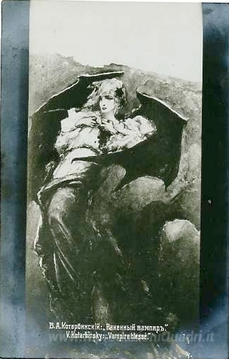 Ti offriamo una riproduzione artigianale su tela dell'opera famosa 'Il vampiro ferito' di Wilhelm Kotarbinski, dal Museo delle Riproduzioni.
