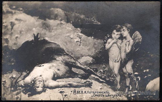 Ti offriamo una riproduzione artigianale su tela dell'opera famosa 'La morte di un centauro' di Wilhelm Kotarbinski, dal Museo delle Riproduzioni.