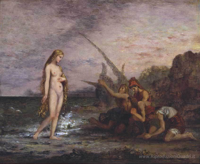 Ti offriamo una riproduzione artigianale su tela dell'opera famosa 'La nascita di Venere' di Gustave Moreau, dal Museo delle Riproduzioni.