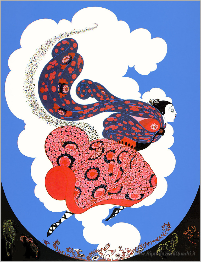 Ti offriamo una riproduzione artigianale su tela dell'opera famosa 'La ricerca della Flore' di Erte, dal Museo delle Riproduzioni.