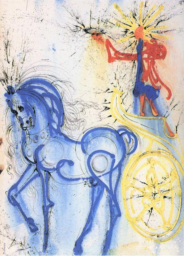 Ti offriamo una riproduzione artigianale su tela dell'opera famosa 'Le Char d'Or' di Salvador Dali, dal Museo delle Riproduzioni.