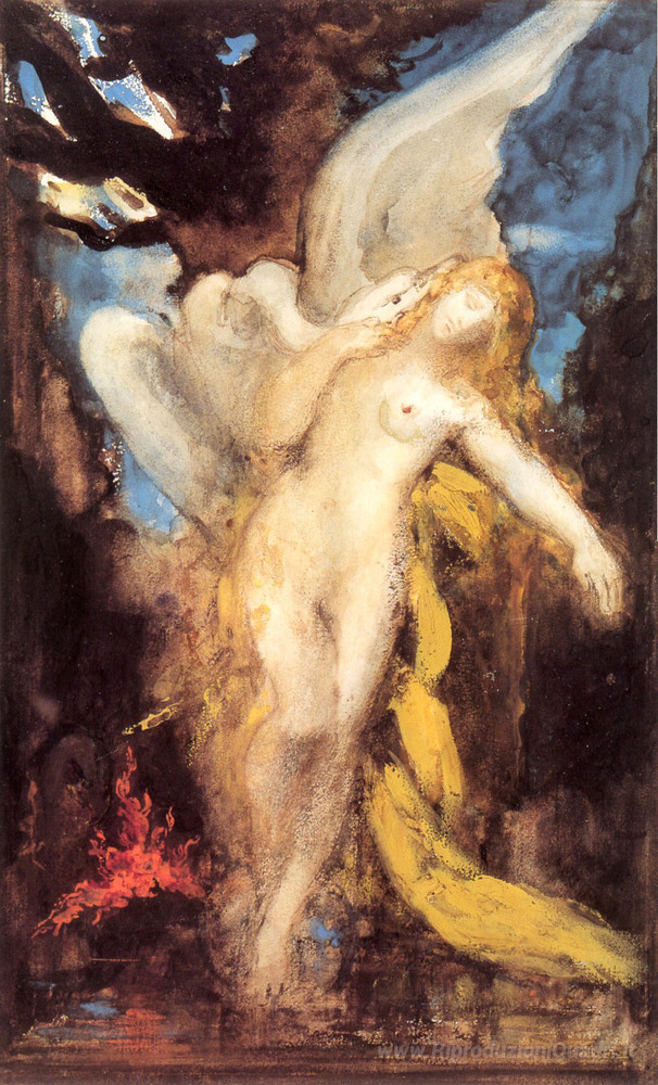 Ti offriamo una riproduzione artigianale su tela dell'opera famosa 'Leda' di Gustave Moreau, dal Museo delle Riproduzioni.