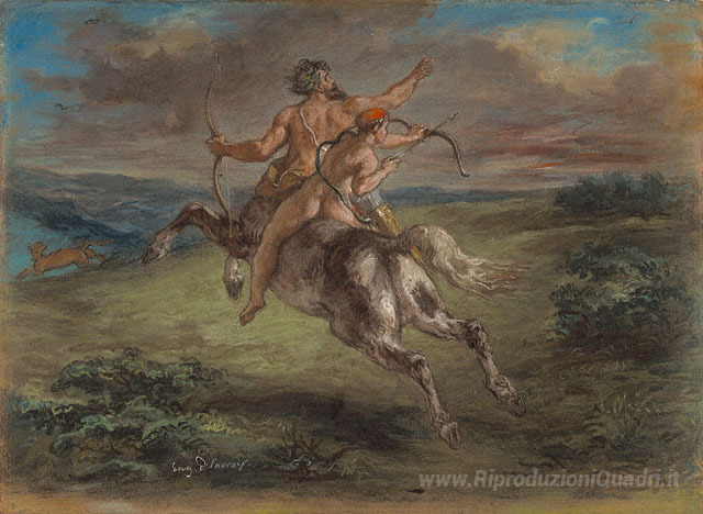 Ti offriamo una riproduzione artigianale su tela dell'opera famosa 'L'educazione di Achille' di Eugene Delacroix, dal Museo delle Riproduzioni.