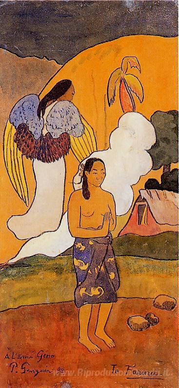 Ti offriamo una riproduzione artigianale su tela dell'opera famosa 'L'incontro' di Paul Gauguin, dal Museo delle Riproduzioni.