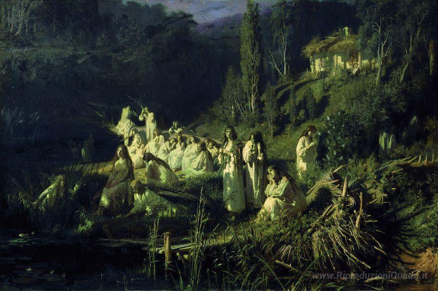 Ti offriamo una riproduzione artigianale su tela dell'opera famosa 'Mermaids' di Ivan Kramskoy, dal Museo delle Riproduzioni.