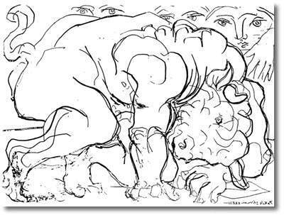 Ti offriamo una riproduzione artigianale su tela dell'opera famosa 'Minotauro è ferito' di Pablo Picasso, dal Museo delle Riproduzioni.