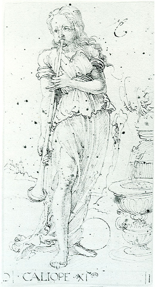 Ti offriamo una riproduzione artigianale su tela dell'opera famosa 'Musa Calliope' di Albrecht Durer, dal Museo delle Riproduzioni.