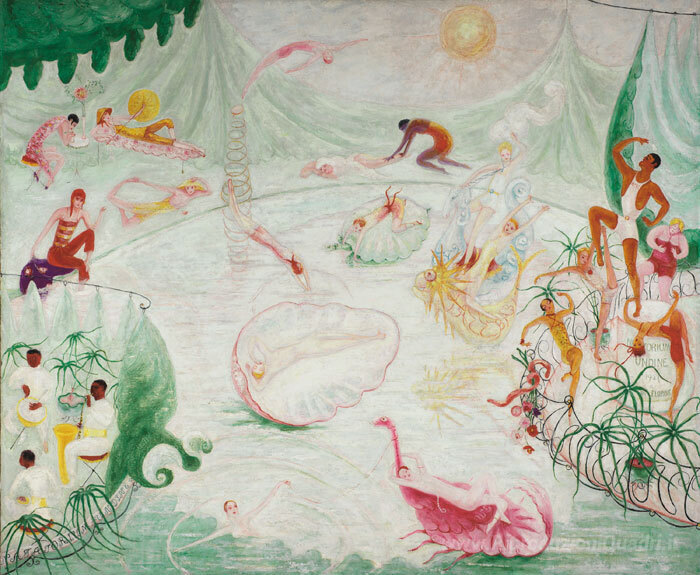Ti offriamo una riproduzione artigianale su tela dell'opera famosa 'Natatorium Undine' di Florine Stettheimer, dal Museo delle Riproduzioni.