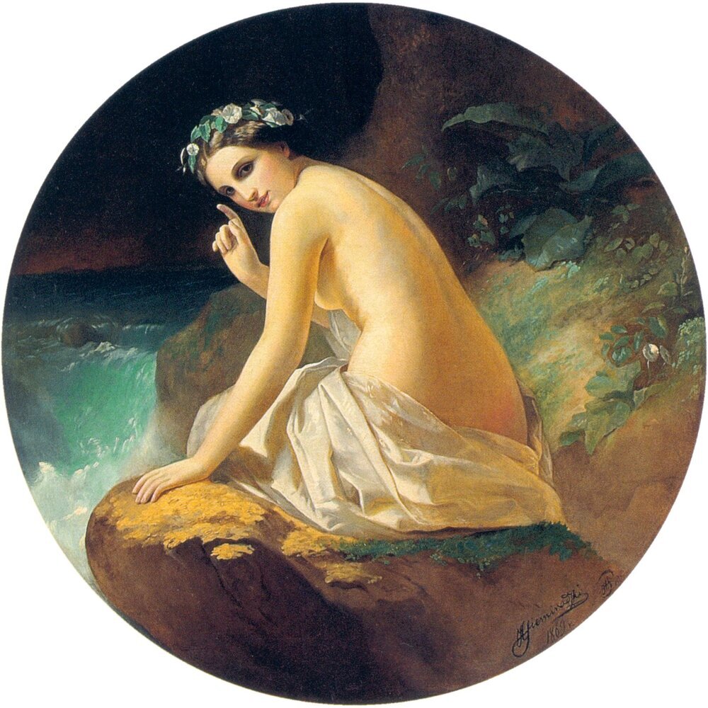 Ti offriamo una riproduzione artigianale su tela dell'opera famosa 'Nimfa' di Henryk Siemiradzki, dal Museo delle Riproduzioni.