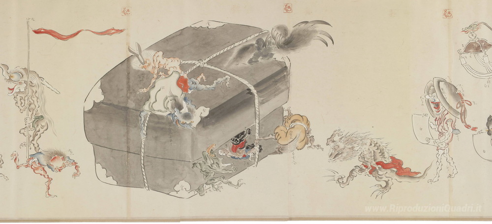 Ti offriamo una riproduzione artigianale su tela dell'opera famosa 'Notte marzo di un centinaio di demoni (particolare)' di Tosa Mitsuoki, dal Museo delle Riproduzioni.