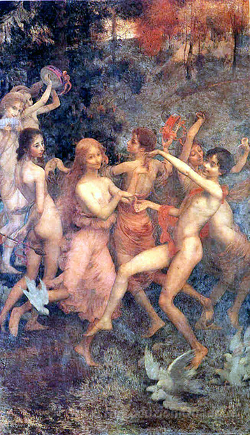 Ti offriamo una riproduzione artigianale su tela dell'opera famosa 'Oreadas' di Eliseu Visconti, dal Museo delle Riproduzioni.