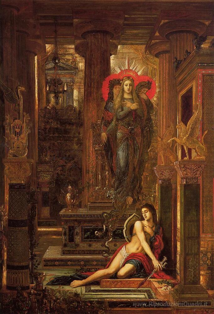 Ti offriamo una riproduzione artigianale su tela dell'opera famosa 'Oreste e le Erinni' di Gustave Moreau, dal Museo delle Riproduzioni.