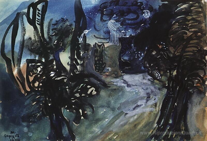 Ti offriamo una riproduzione artigianale su tela dell'opera famosa 'Orfeo' di Martiros Saryan, dal Museo delle Riproduzioni.