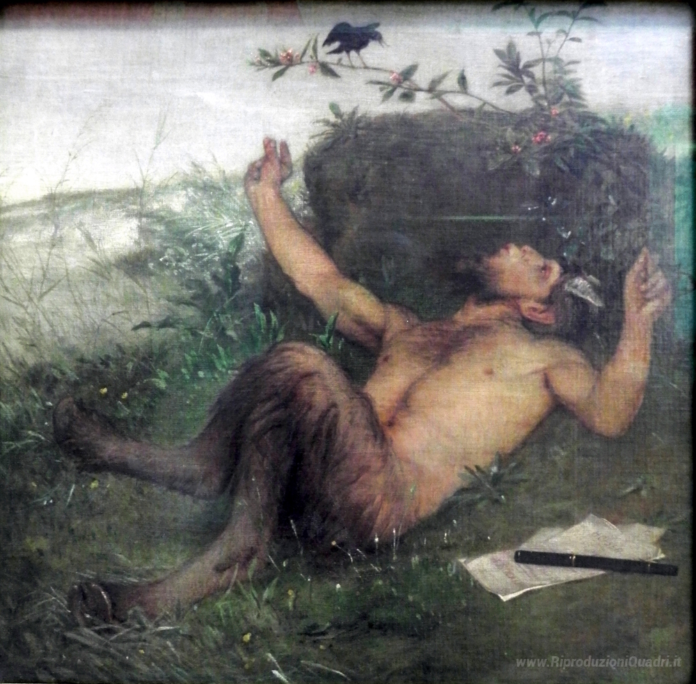 Ti offriamo una riproduzione artigianale su tela dell'opera famosa 'Pan fischiare a un merlo' di Arnold Böcklin, dal Museo delle Riproduzioni.