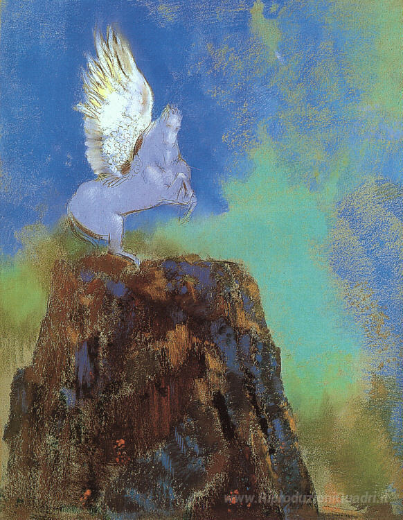 Ti offriamo una riproduzione artigianale su tela dell'opera famosa 'Pegasus' di Odilon Redon, dal Museo delle Riproduzioni.