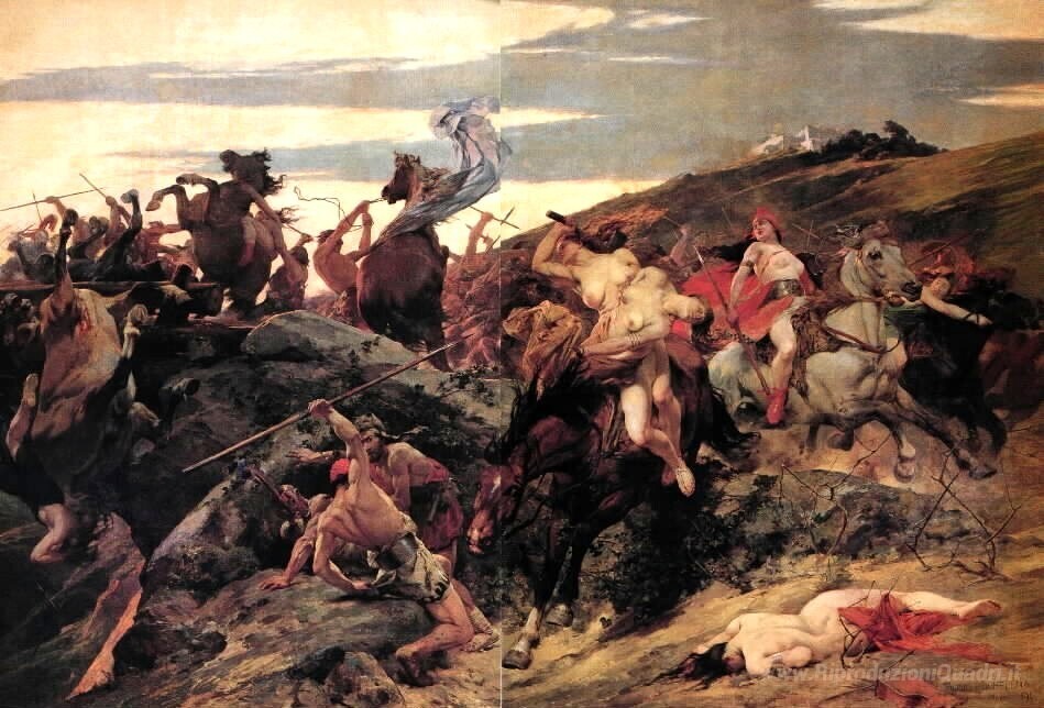 Ti offriamo una riproduzione artigianale su tela dell'opera famosa 'Pentesilea' di Arturo Michelena, dal Museo delle Riproduzioni.