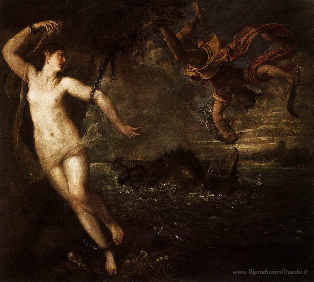 Ti offriamo una riproduzione artigianale su tela dell'opera famosa 'Perseo e Andromeda' di Titian, dal Museo delle Riproduzioni.
