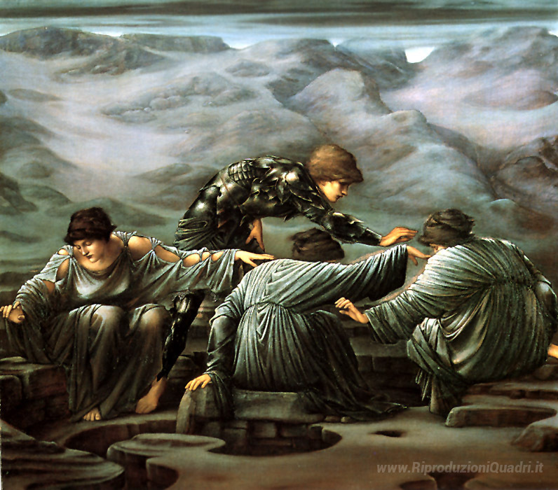 Ti offriamo una riproduzione artigianale su tela dell'opera famosa 'Perseo e Graiae' di Edward Burne-Jones, dal Museo delle Riproduzioni.
