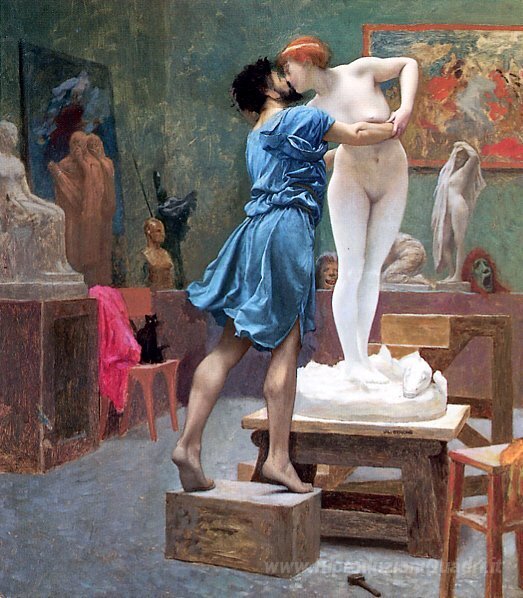 Ti offriamo una riproduzione artigianale su tela dell'opera famosa 'Pigmalione e Galatea' di Jean-Leon Gerome, dal Museo delle Riproduzioni.