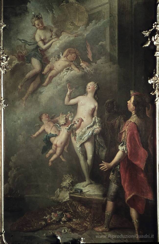 Ti offriamo una riproduzione artigianale su tela dell'opera famosa 'Pigmalione und Galatea' di Antoine Pesne, dal Museo delle Riproduzioni.