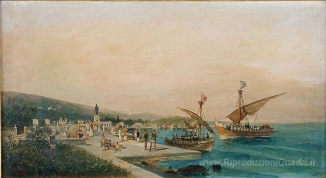 Ti offriamo una riproduzione artigianale su tela dell'opera famosa 'Return of the Argonauts' di Konstantinos Volanakis, dal Museo delle Riproduzioni.