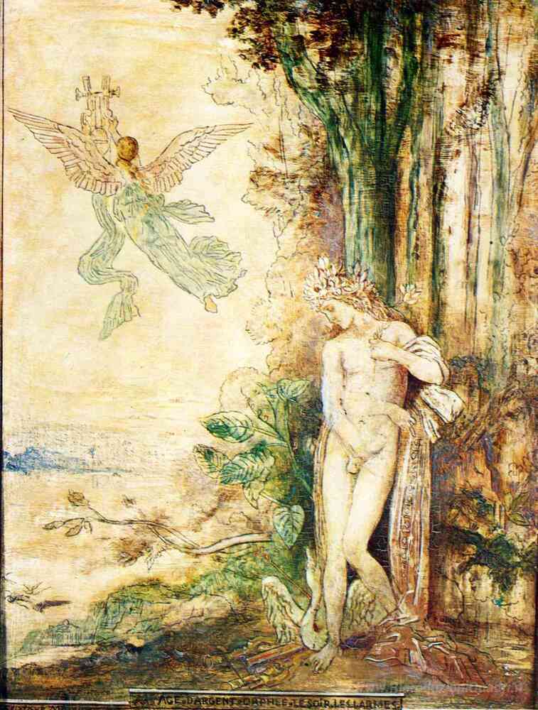 Ti offriamo una riproduzione artigianale su tela dell'opera famosa 'Silver Age (Orpheus)' di Gustave Moreau, dal Museo delle Riproduzioni.