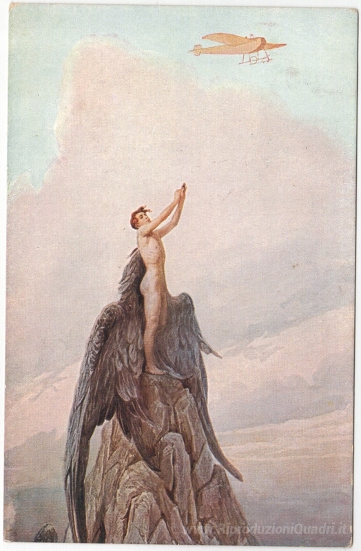 Ti offriamo una riproduzione artigianale su tela dell'opera famosa 'Sogno di Icaro' di Sergey Solomko, dal Museo delle Riproduzioni.
