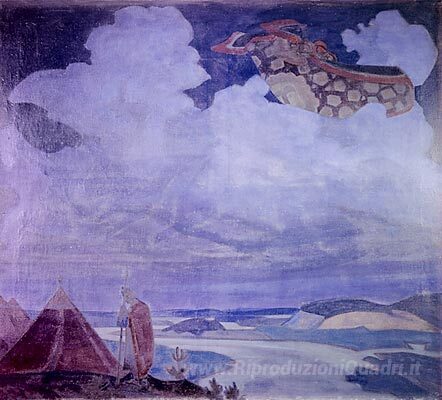 Ti offriamo una riproduzione artigianale su tela dell'opera famosa 'Tappeto Volante' di Nicholas Roerich, dal Museo delle Riproduzioni.