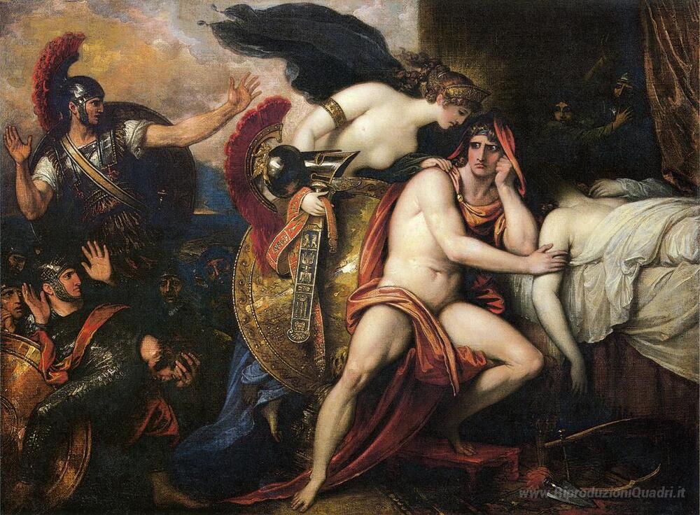 Ti offriamo una riproduzione artigianale su tela dell'opera famosa 'Thetis Portare l'armatura ad Achille' di Benjamin West, dal Museo delle Riproduzioni.