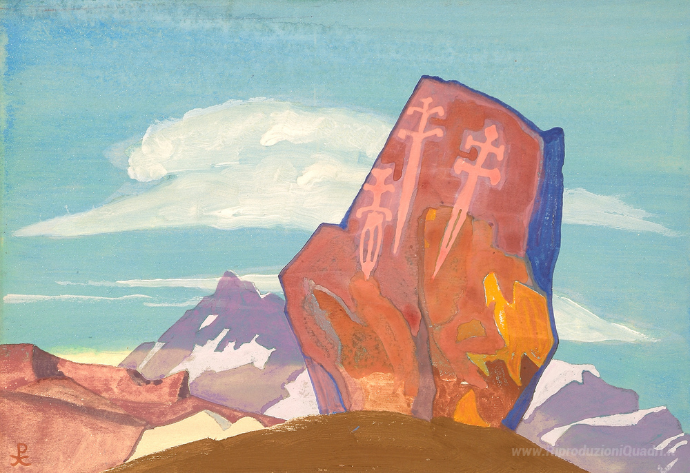 Ti offriamo una riproduzione artigianale su tela dell'opera famosa 'Tre spade' di Nicholas Roerich, dal Museo delle Riproduzioni.