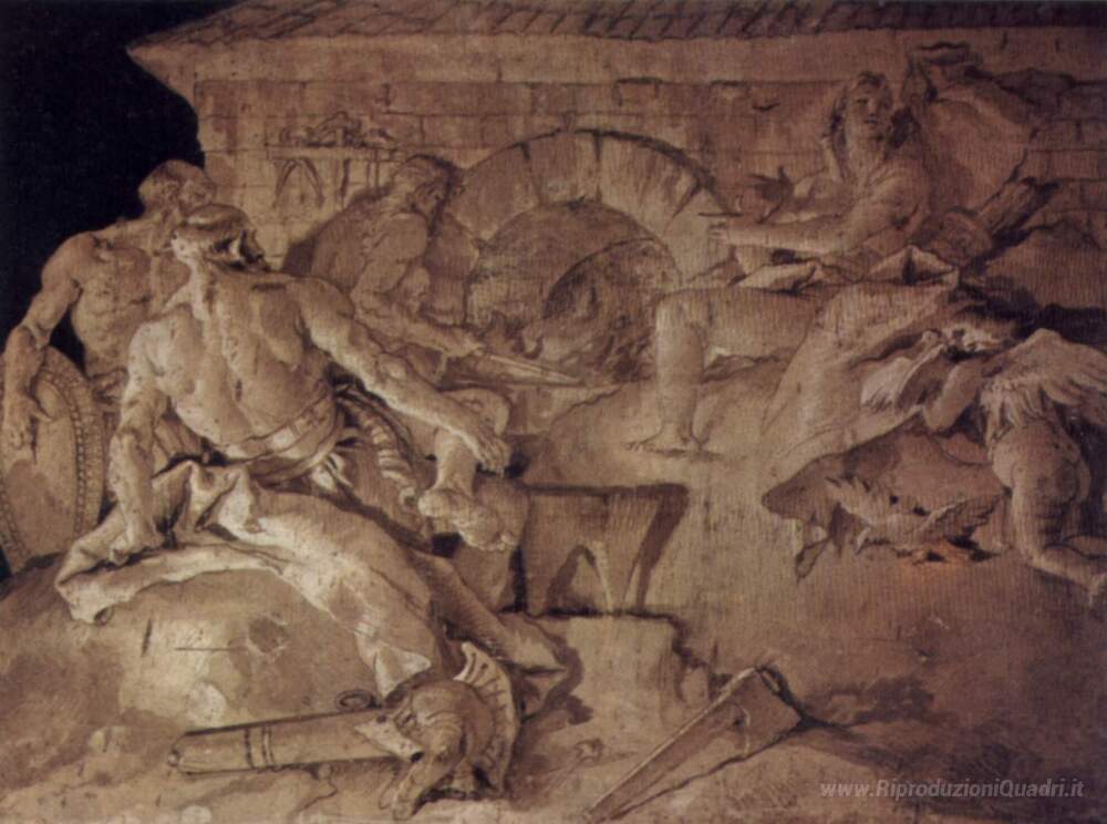 Ti offriamo una riproduzione artigianale su tela dell'opera famosa 'Venere chiede a Vulcano di forgiare un'armatura per Aeneas' di Giovanni Battista Tiepolo, dal Museo delle Riproduzioni.