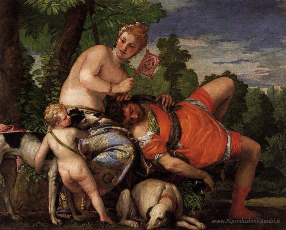 Ti offriamo una riproduzione artigianale su tela dell'opera famosa 'Venere e Adone' di Paolo Veronese, dal Museo delle Riproduzioni.