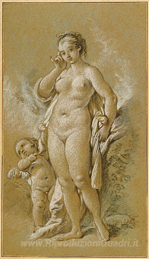 Ti offriamo una riproduzione artigianale su tela dell'opera famosa 'Venere e Amore' di Francois Boucher, dal Museo delle Riproduzioni.
