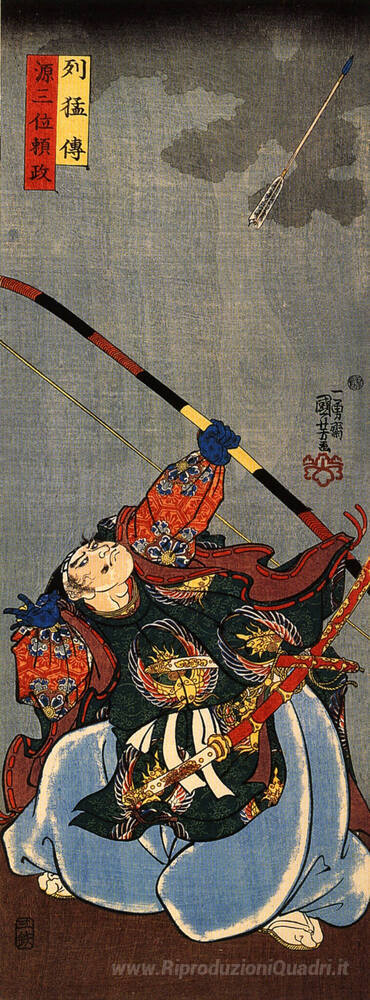 Ti offriamo una riproduzione artigianale su tela dell'opera famosa 'Yorimasa sparare mostro Nuye' di Utagawa Kuniyoshi, dal Museo delle Riproduzioni.