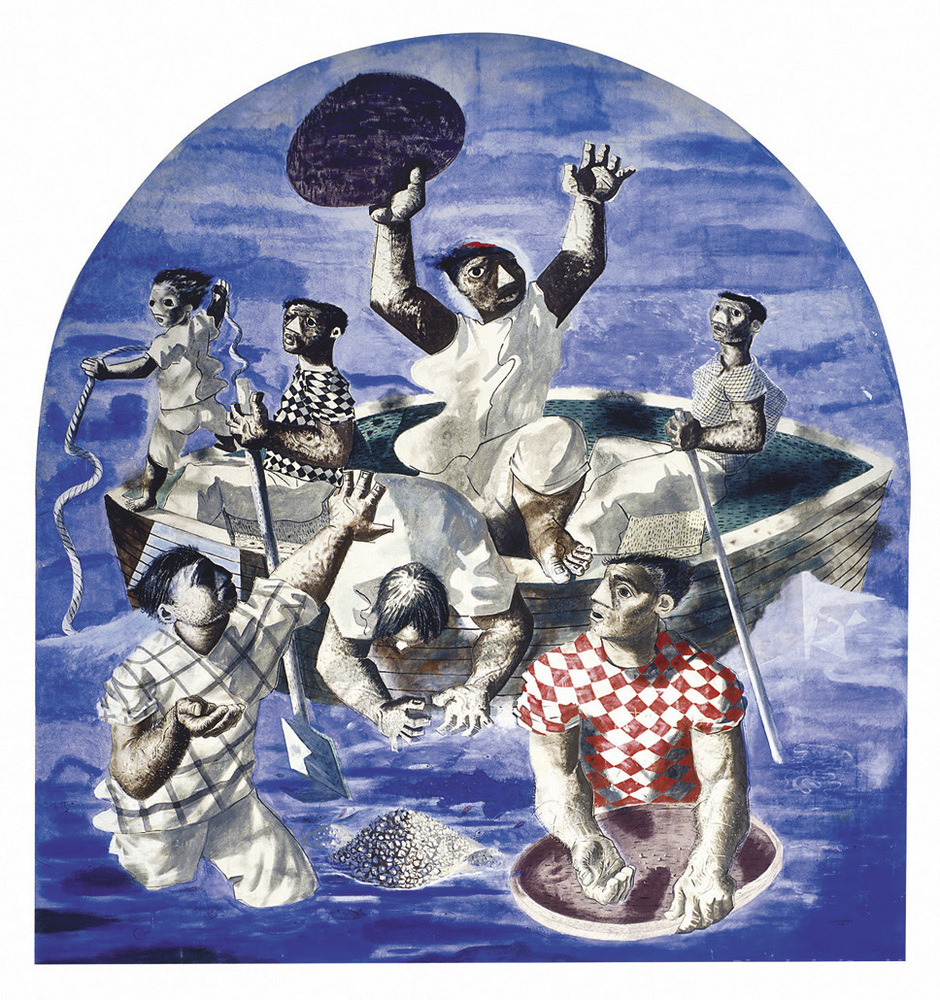 Ti offriamo una riproduzione artigianale su tela dell'opera famosa 'La scoperta di oro' di Candido Portinari, dal Museo delle Riproduzioni.