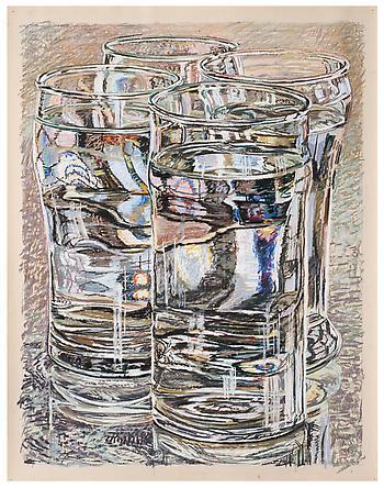 Ti offriamo una riproduzione artigianale su tela dell'opera famosa '4 bicchieri' di Janet Fish, dal Museo delle Riproduzioni.