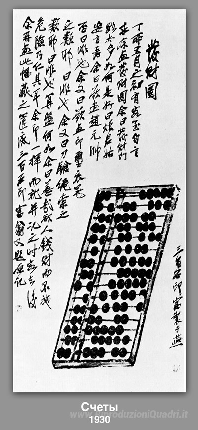 Ti offriamo una riproduzione artigianale su tela dell'opera famosa 'Abaco' di Qi Baishi, dal Museo delle Riproduzioni.