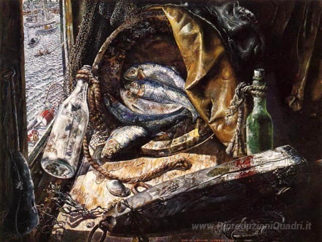 Benvenuti nella nostra selezione esclusiva di dipinti a olio italiani, dove ogni opera racconta una storia unica, riflettendo passione e abilità artistiche. Oggi vi introduciamo a Ivan Albright, un maestro della pittura contemporanea, noto per la sua capacità di catturare l’essenza della natura attraverso una tecnica minuziosa e un uso magistrale del colore. Il suo capolavoro, Ah Dio, Aringhe, il mare scintillante, è un esempio sublime di come l’arte possa trascendere il tempo e immergere l’osservatore in un’atmosfera di intensa emozione e bellezza.