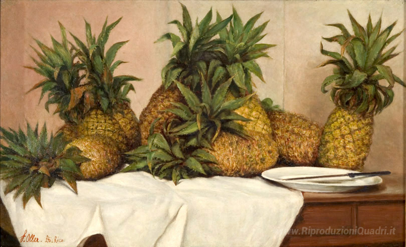 Ti offriamo una riproduzione artigianale su tela dell'opera famosa 'Ananas' di Francisco Oller, dal Museo delle Riproduzioni.