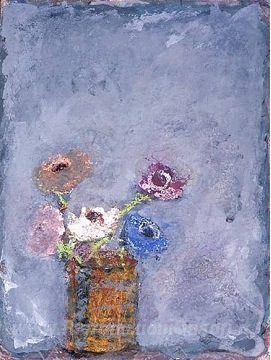 Ti offriamo una riproduzione artigianale su tela dell'opera famosa 'Anemonie in arrugginito Can' di Gandy Brodie, dal Museo delle Riproduzioni.