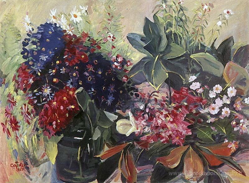 Ti offriamo una riproduzione artigianale su tela dell'opera famosa 'Anniversario fiori' di Martiros Saryan, dal Museo delle Riproduzioni.