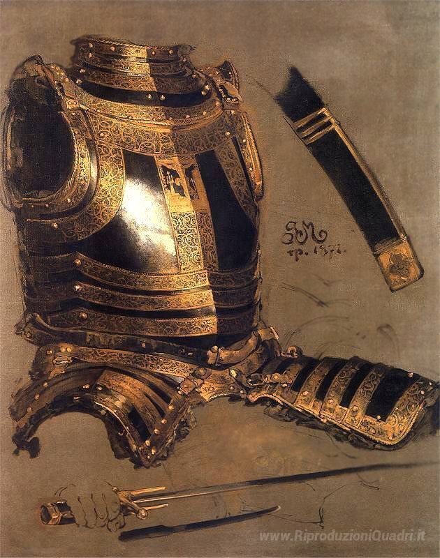 Ti offriamo una riproduzione artigianale su tela dell'opera famosa 'Armatura di Stefan Batory' di Jan Matejko, dal Museo delle Riproduzioni.